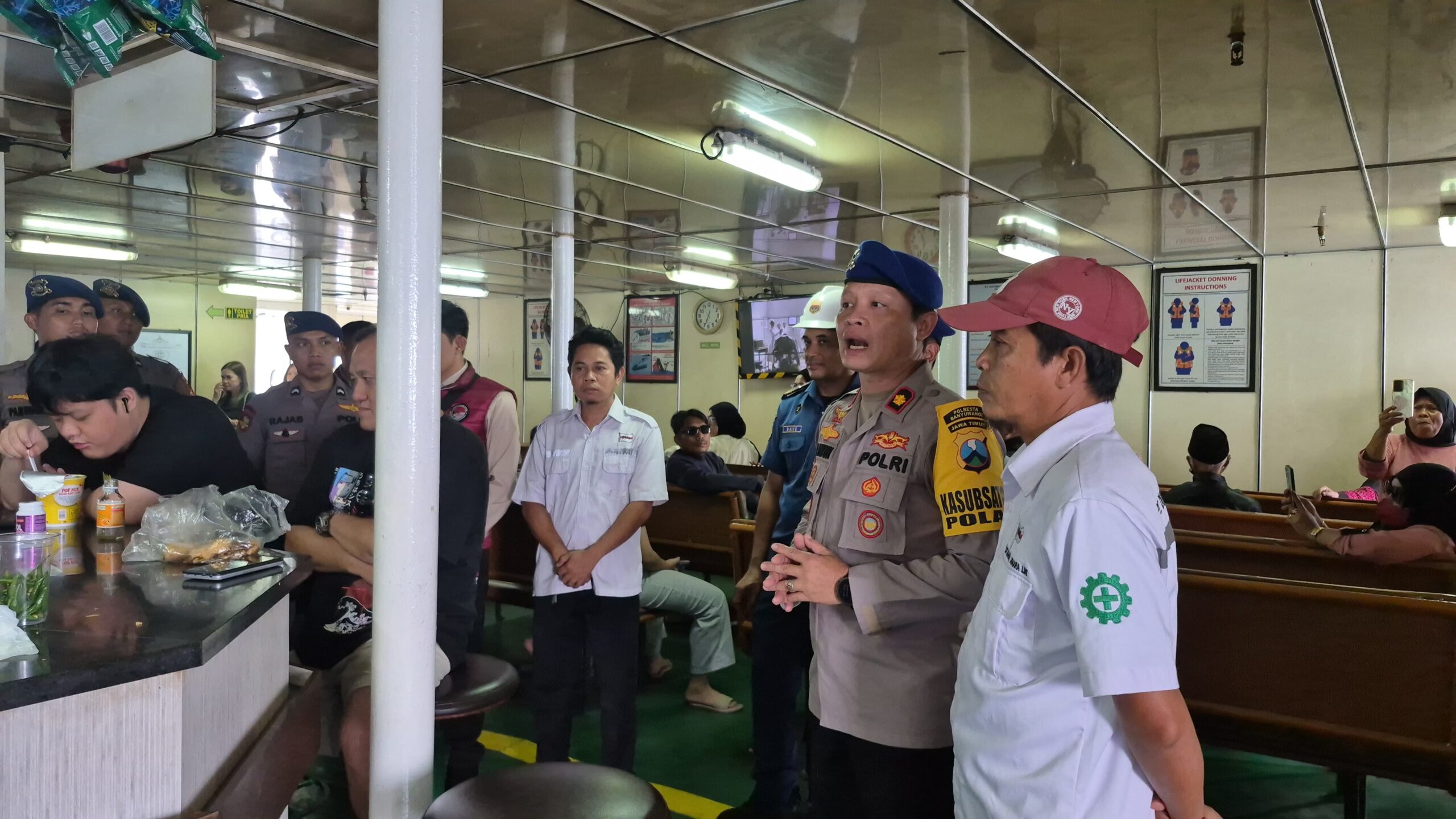 Pertama, keselamatan kendaraan, meliputi bus, travel, dan mobil pribadi yang akan menyeberang, keselamatan kapal, dengan melakukan pengecekan alat keselamatan, manifest penumpang, serta kelengkapan dokumen kapal.