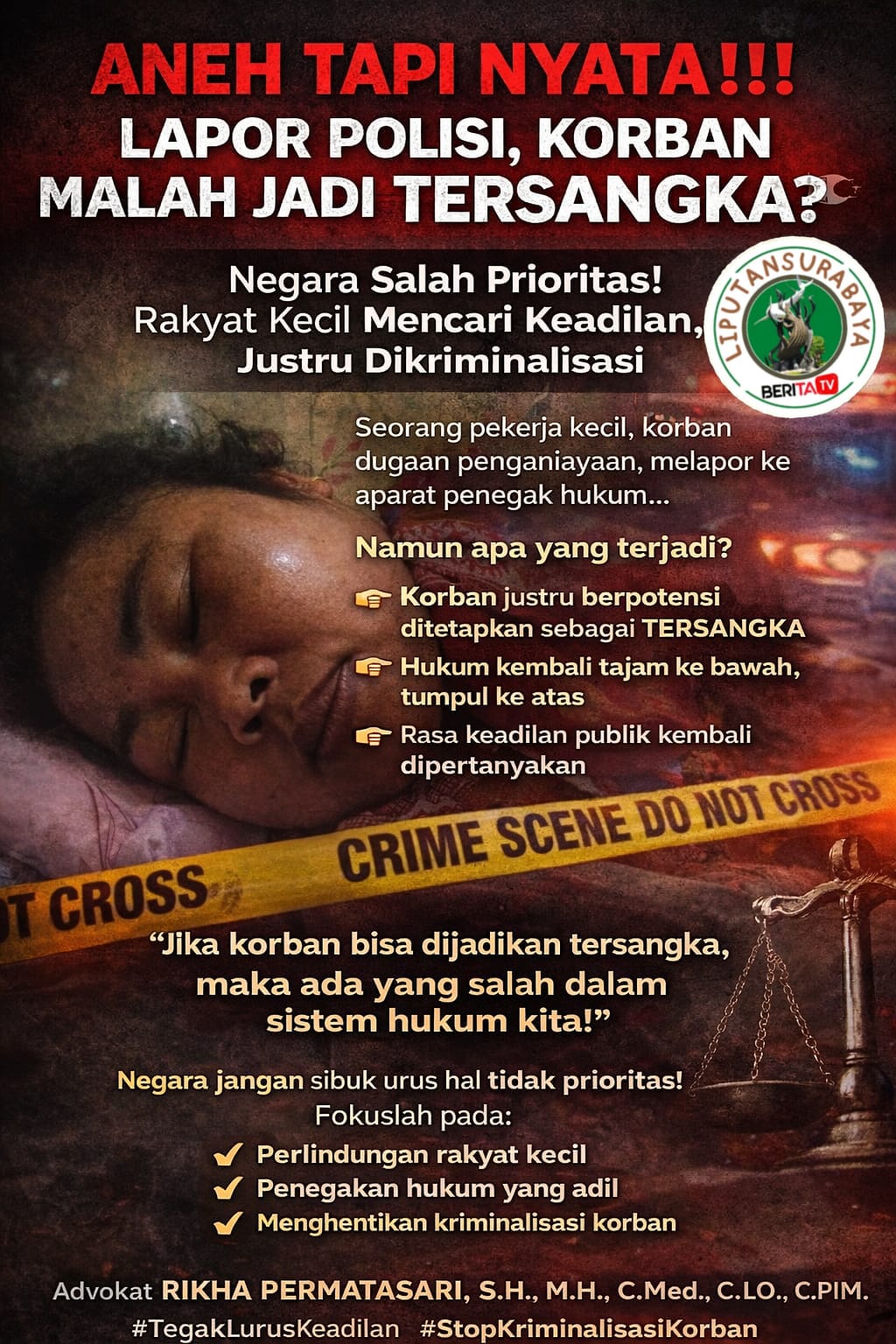 Liputan Surabaya – Surabaya, Advokat Rikha Permatasari, S.H., M.H., C.Med., C.LO., C.PIM., melontarkan kritik tajam terhadap arah kebijakan negara yang dinilai semakin menjauh dari rasa keadilan publik. Ia menyoroti wacana penyeragaman advokat yang dianggap tidak menyentuh persoalan mendasar dalam penegakan hukum di Indonesia.