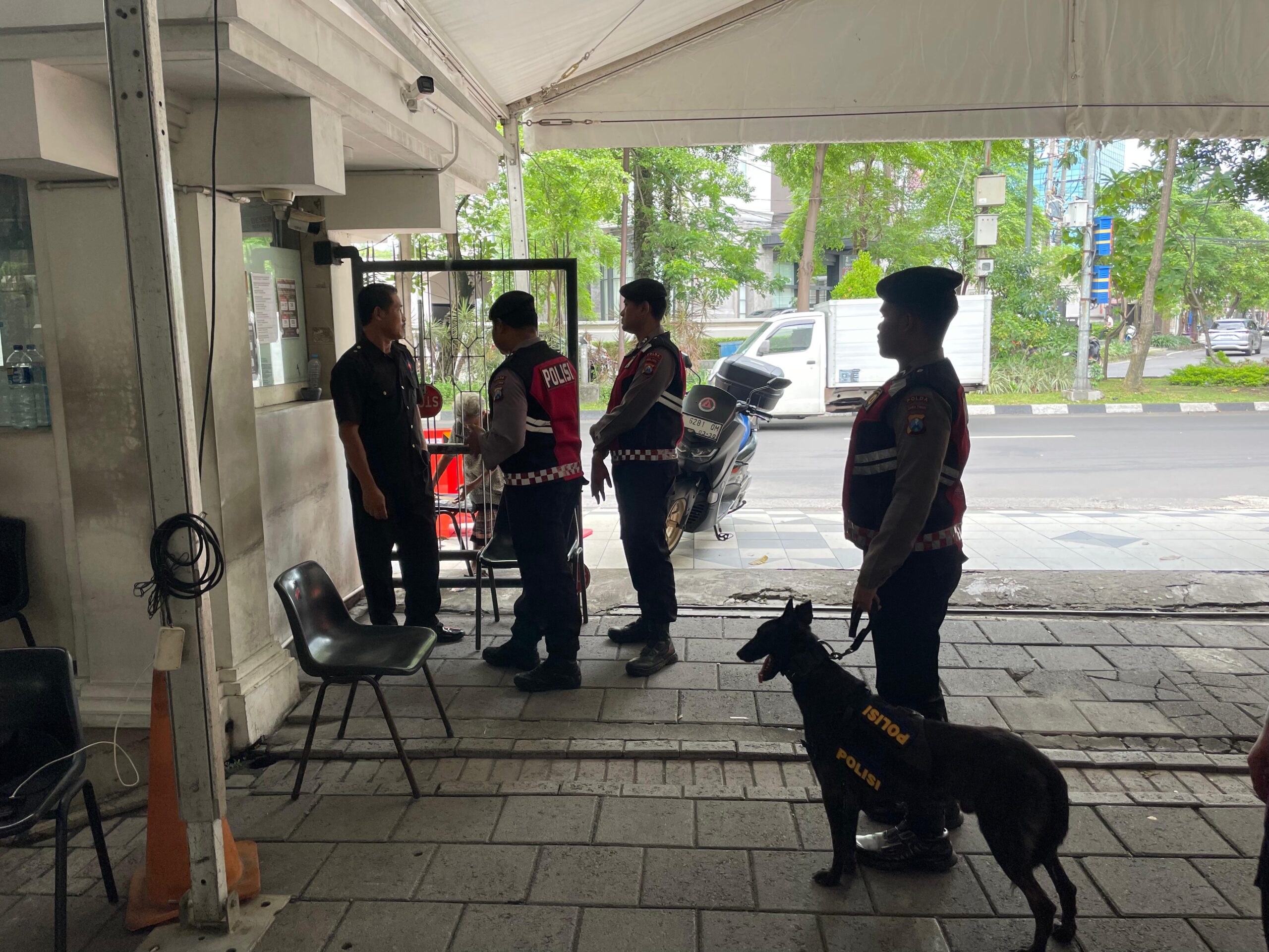Dalam pelaksanaannya, personel Ditsamapta Polda Jatim mengerahkan satwa K9 untuk melakukan pemeriksaan menyeluruh di area dalam dan sekitar gereja.