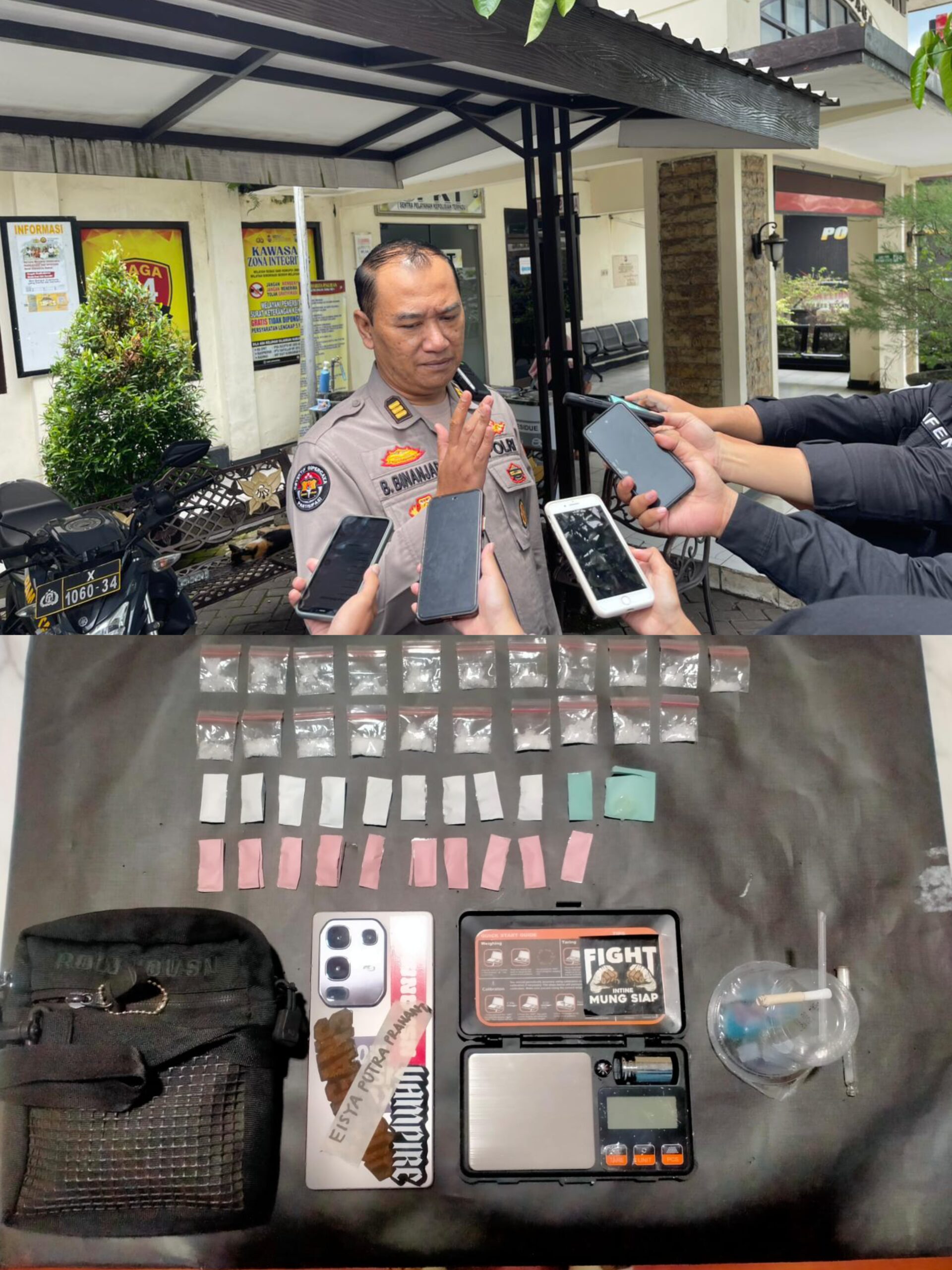 Dalam penggerebekan tersebut, petugas menyita sebanyak 21 paket sabu dengan berat bersih 4,97 gram. Polisi juga mengamankan sejumlah barang bukti lain berupa alat hisap, pipet kaca, timbangan digital, serta telepon seluler yang diduga digunakan untuk transaksi narkoba.