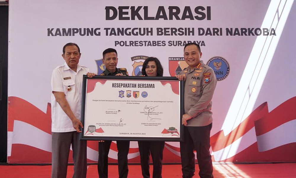 “Makanya berangkat dari pengungkapan kasus tsb, satresnarkoba Polrestabes Surabaya, berdasarkan mengacu instruksi bapak Kapolri ini kita menetapkan dan membangun kampung tangguh bebas narkoba di Surabaya ini,” ungkap Pasma.