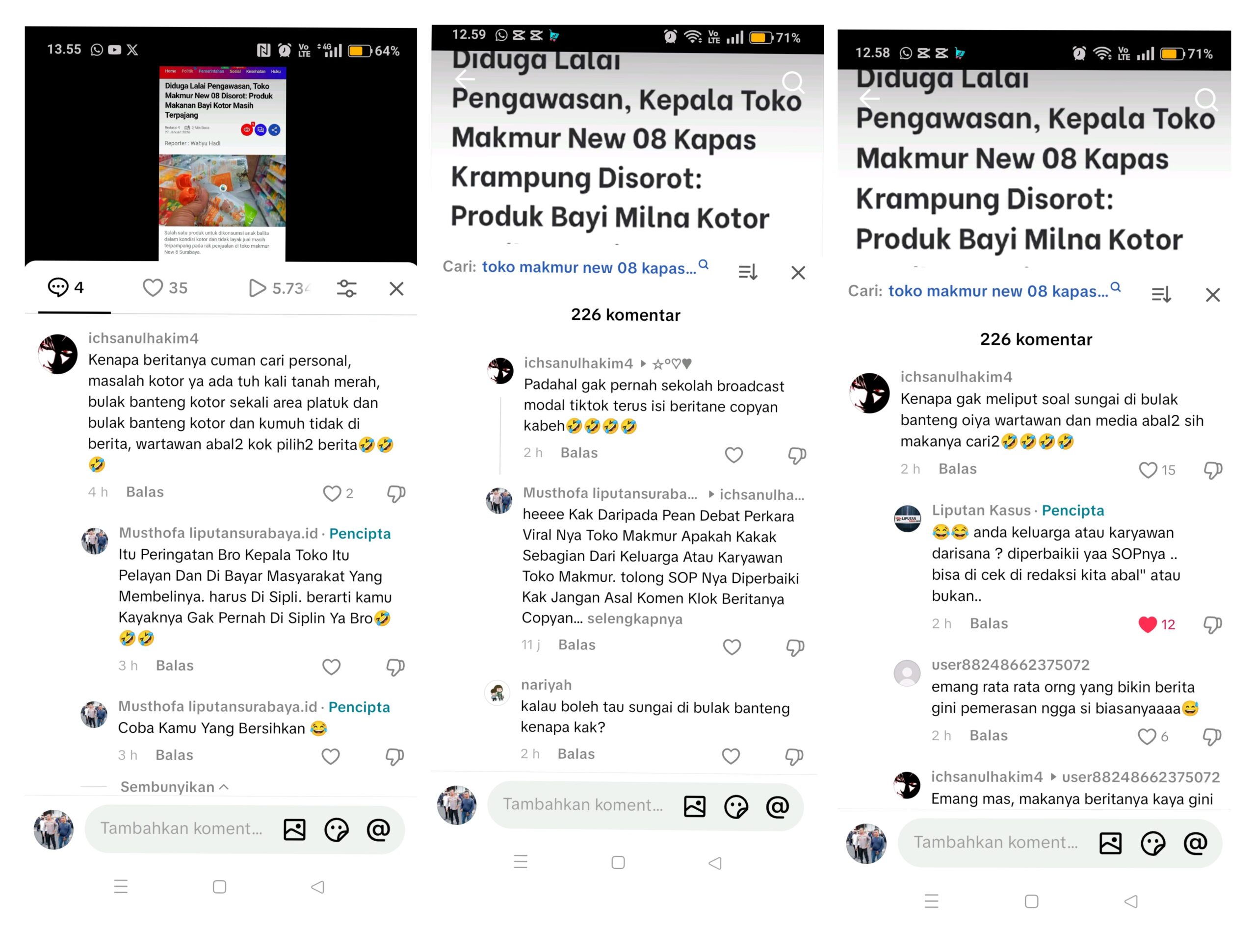 Alih-alih mendapat jawaban substansial, pemberitaan justru dihadapkan pada serangan komentar miring di media sosial, khususnya di akun TikTok @liputankasus.com dan @liputansurabaya.id.
