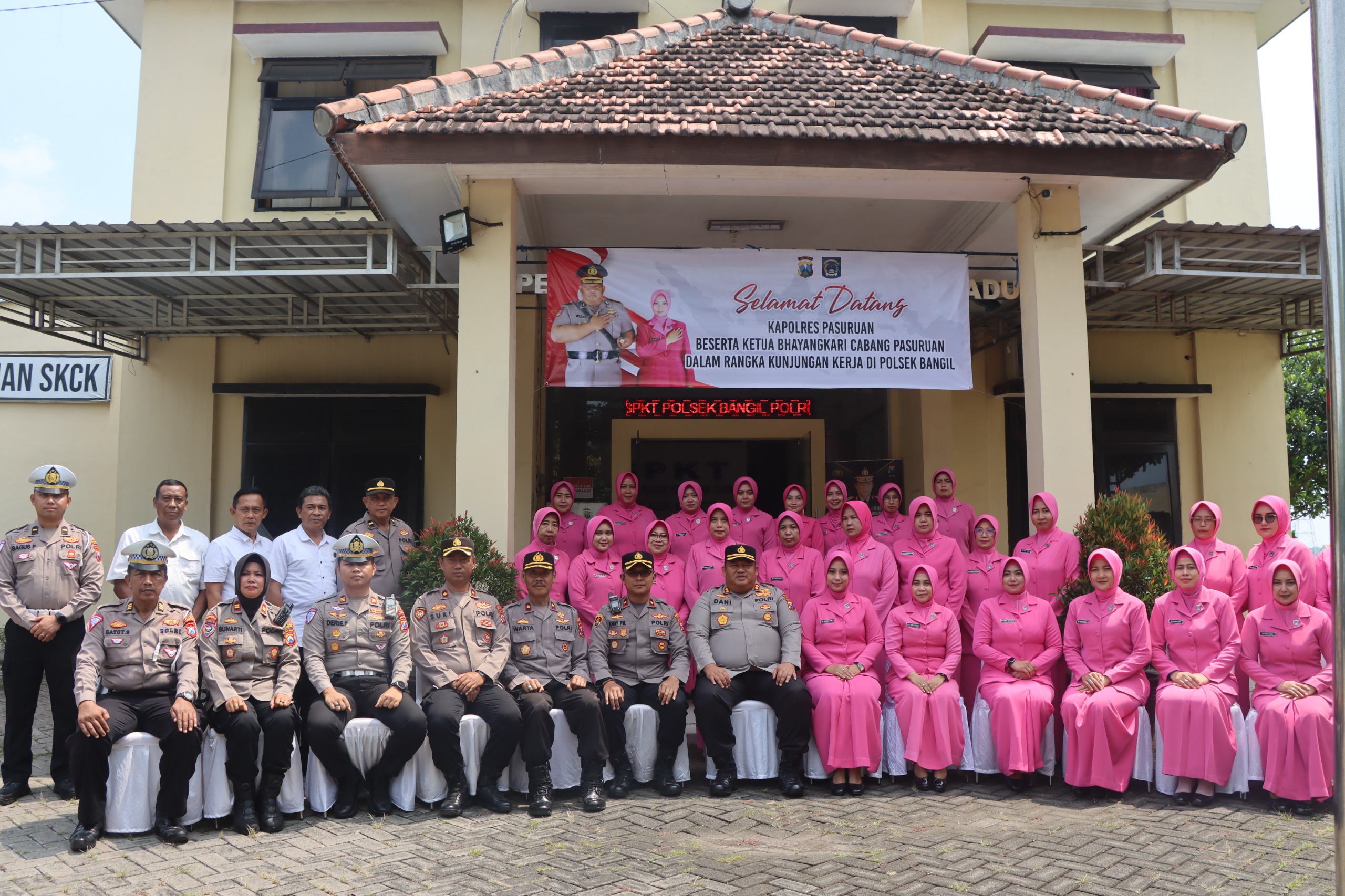 Liputan Surabaya โ Pasuruan, Kapolres Pasuruan AKBP Jazuli Dani Irawan bersama Ketua Bhayangkari Cabang Pasuruan, Ny. Widya Dani, melakukan kunjungan kerja ke Polsek Bangil, Rabu (23/4/2025).