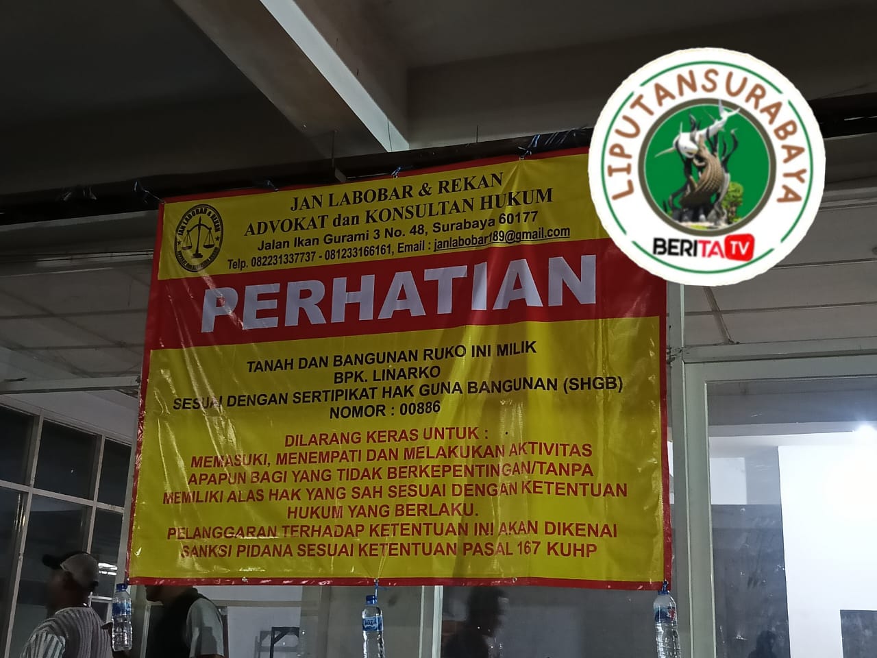 Keluarga juga melaporkan adanya dugaan gangguan fasilitas air bersih yang semakin memperburuk kondisi. Di bagian depan bangunan, terpasang spanduk klaim kepemilikan oleh pihak tertentu, meskipun belum ada keputusan pengadilan yang berkekuatan hukum tetap terkait status bangunan tersebut.