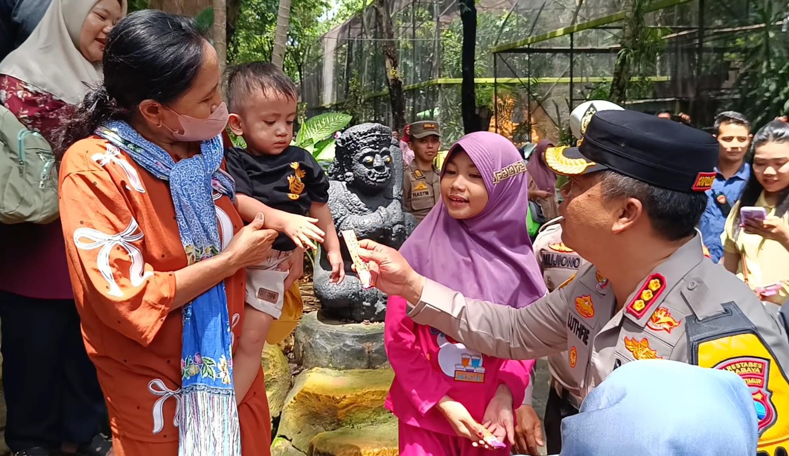Langkah ini dilakukan seiring peningkatan jumlah pengunjung, baik dari dalam maupun luar kota Surabaya. Selain memastikan keamanan dan kenyamanan, Kapolrestabes juga menyempatkan diri menyapa dan membagikan cokelat kepada anak-anak pengunjung.