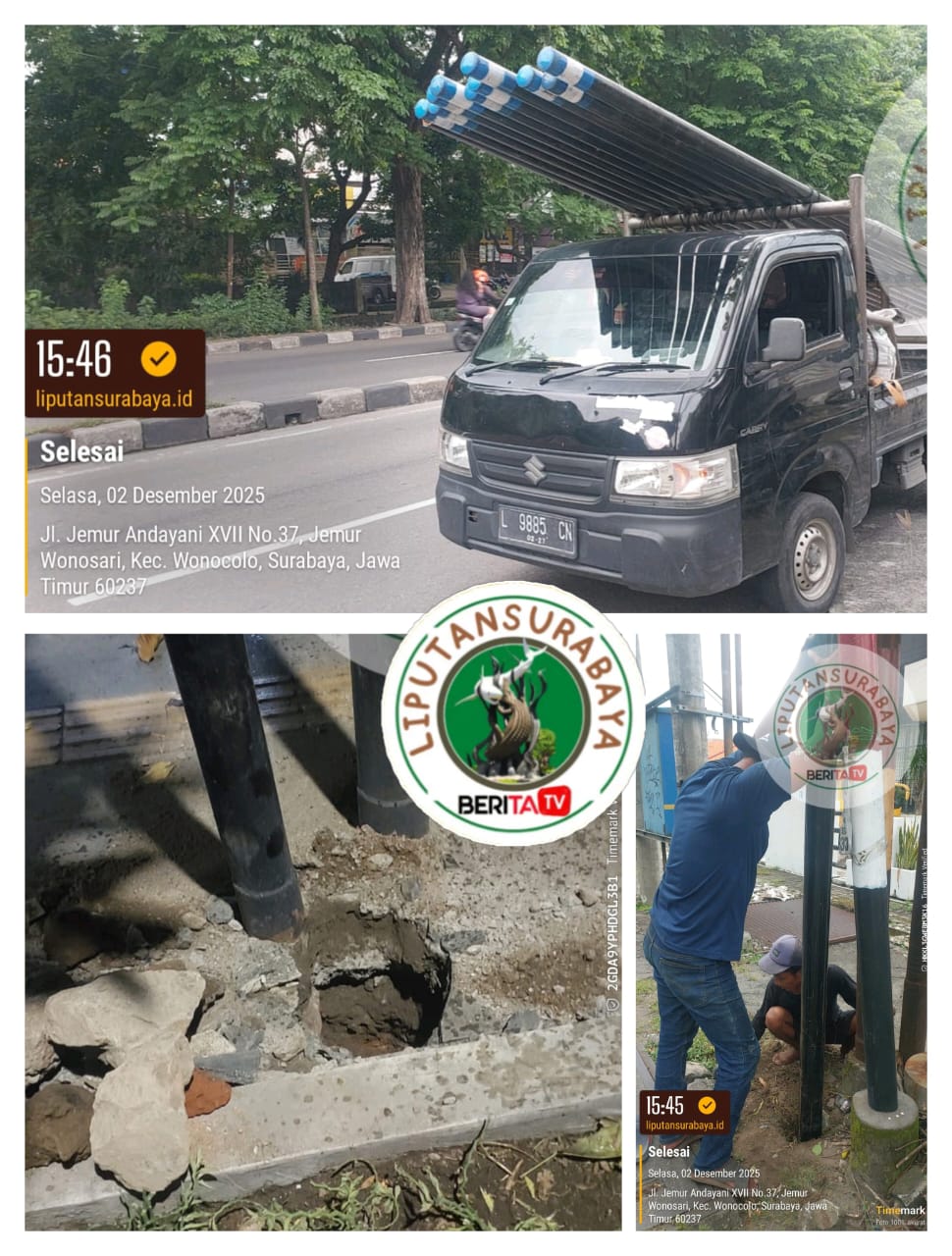 Liputan Surabaya – Surabaya, Praktik pemasangan tiang internet Inforte di Jalan Jemur Andayani, Kecamatan Wonocolo, pada Selasa (2/12/2025) sore, tercium aroma pelanggaran serius. Pekerjaan dilakukan di jam-jam padat lalu lintas, tanpa izin, tanpa pengawasan, dan tanpa standar keselamatan. Situasi yang semestinya tertib justru diperlakukan sembrono oleh pihak pelaksana.