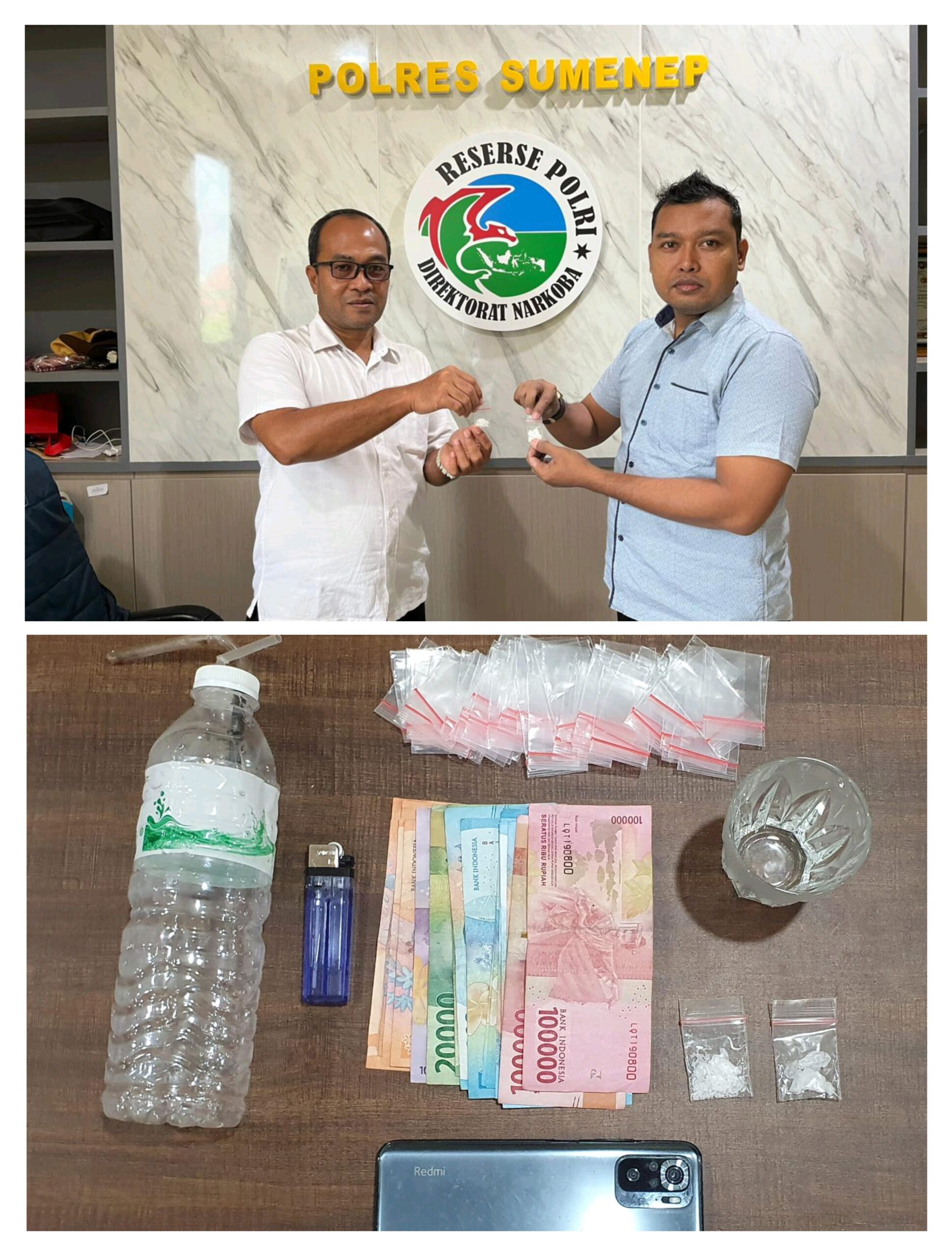 Berdasarkan informasi tersebut, tim Satresnarkoba Polres Sumenep Polda Jatim melakukan penggerebekan dan berhasil menemukan barang bukti berupa sabu seberat 2 gram, alat hisap, serta sejumlah uang tunai.