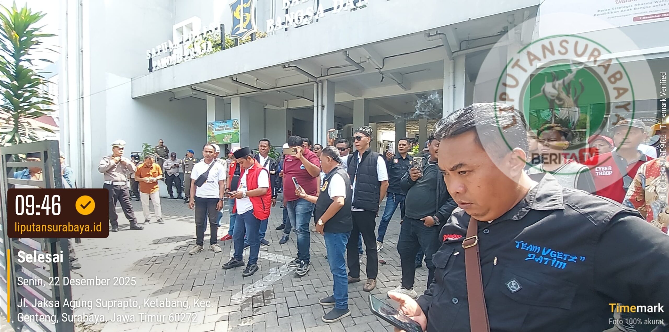 Liputan Surabaya – SURABAYA, Puluhan wartawan dari berbagai media di Kota Surabaya menggelar aksi solidaritas dengan mendatangi Kantor Satuan Polisi Pamong Praja (Satpol PP) Kota Surabaya, Senin (22/12/2025). Aksi yang dimulai sekitar pukul 09.00 WIB itu merupakan bentuk protes atas beredarnya video YouTube berdurasi 181 detik yang menuding seorang wartawan melakukan pencurian kabel.