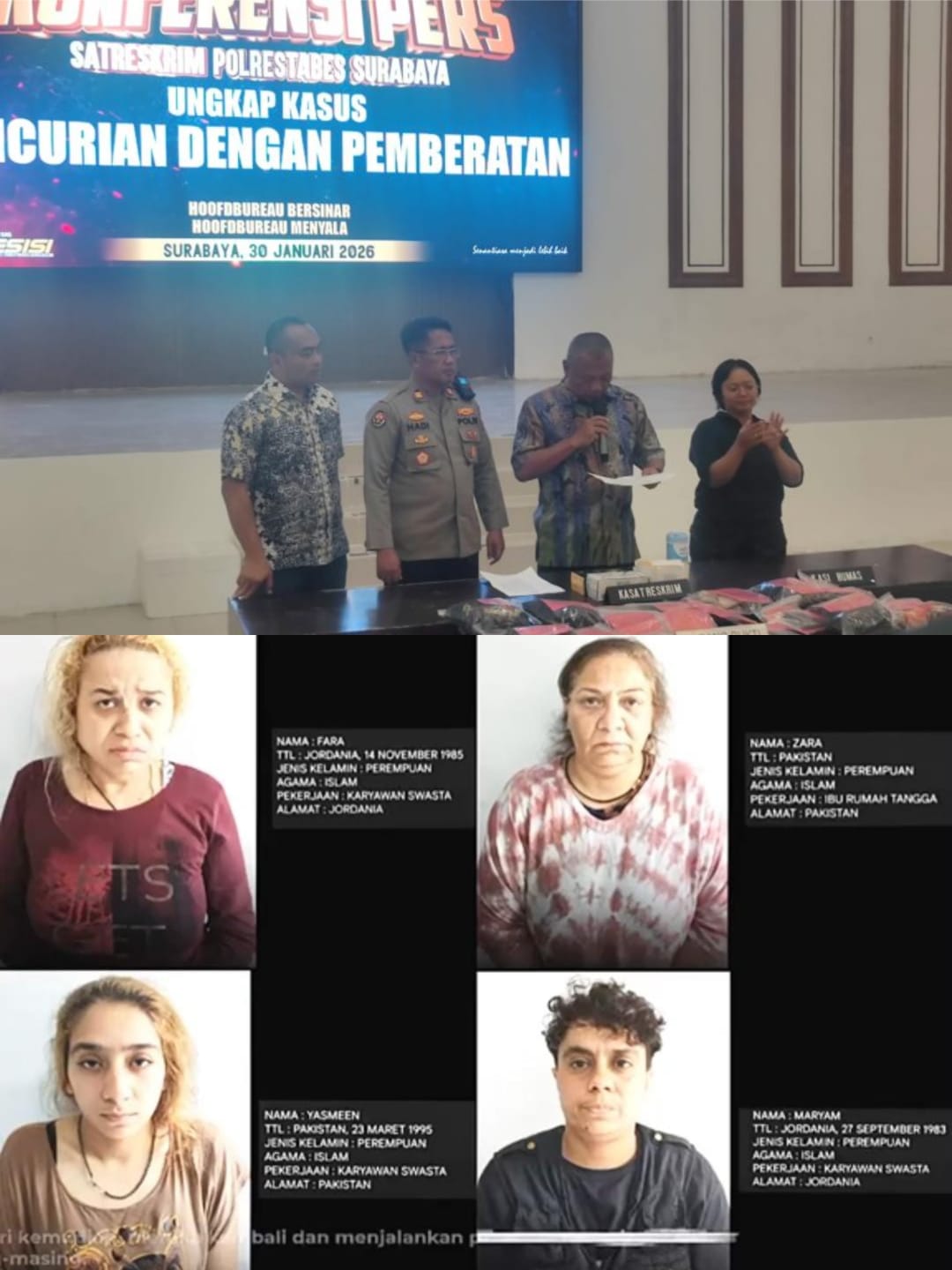 Peristiwa pencurian terjadi pada 25 Desember 2025. Usai menerima laporan korban, Unit Resmob Satreskrim Polrestabes Surabaya melakukan serangkaian penyelidikan hingga akhirnya berhasil menangkap empat pelaku di sebuah hotel di kawasan Jakarta Pusat.