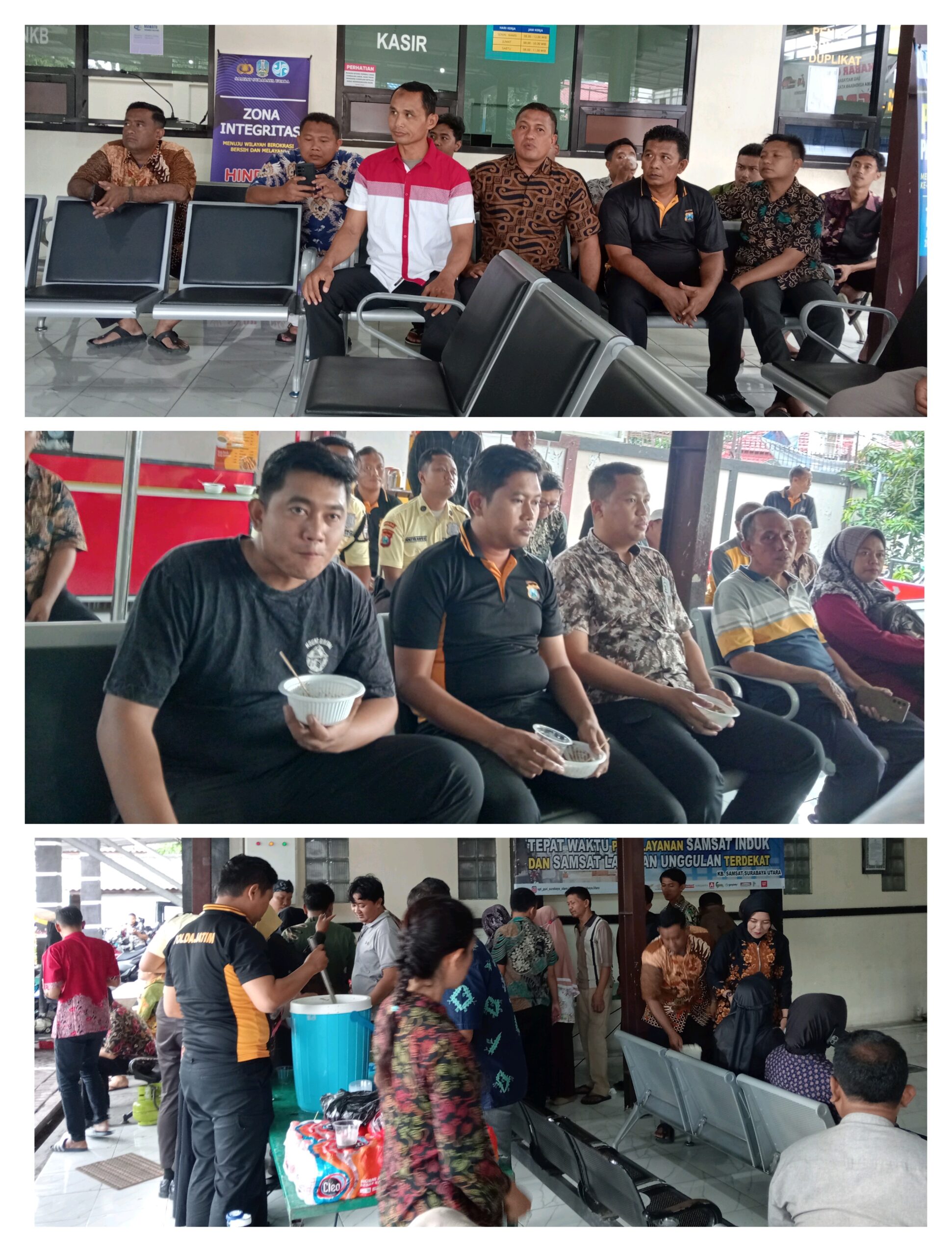 Turut hadir dalam kegiatan tersebut Ipda Rike, Iptu Edi, Iptu Eko, serta Adpel Fajar dari Dispenda Jawa Timur. Mereka bersama-sama mengundang para penjual bakso, soto ayam, dan gorengan untuk menikmati sarapan bersama para wajib pajak (WP) dan petugas Samsat.