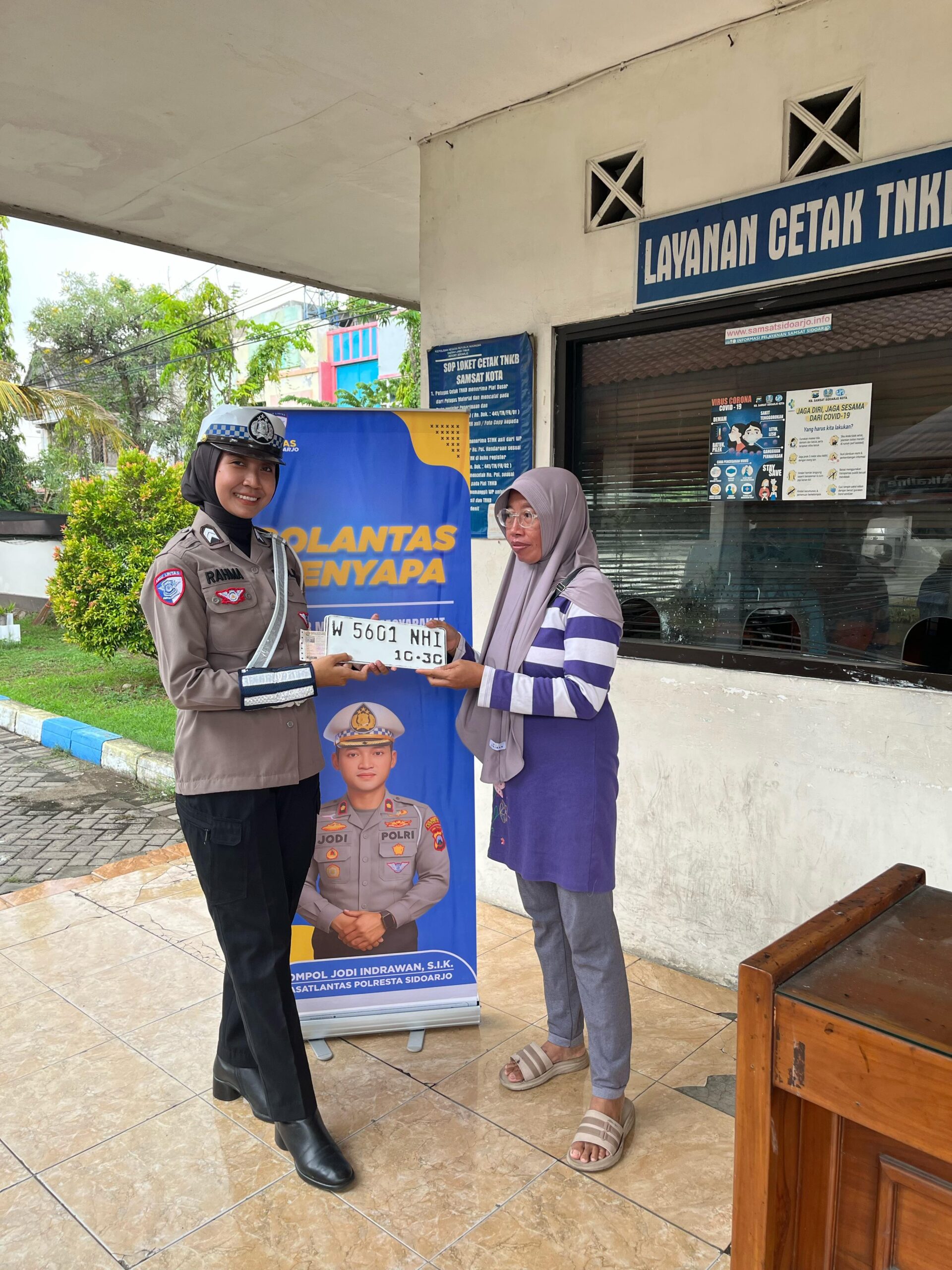 Liputan Surabaya – Sidoarjo, Program “Polantas Menyapa” kembali digelar Ditlantas Polda Jatim melalui KB Samsat Sidoarjo Kota. Dalam kegiatan pelayanan publik yang berlangsung di Jl. Raya Cemeng Kalang No.12, Ngemplak, Cemeng Kalang, Kec. Sidoarjo, Kabupaten Sidoarjo, Jawa Timur, seorang anggota Polantas, Briptu Rahma, menjadi sorotan karena sikap ramah dan humanisnya saat membantu warga.