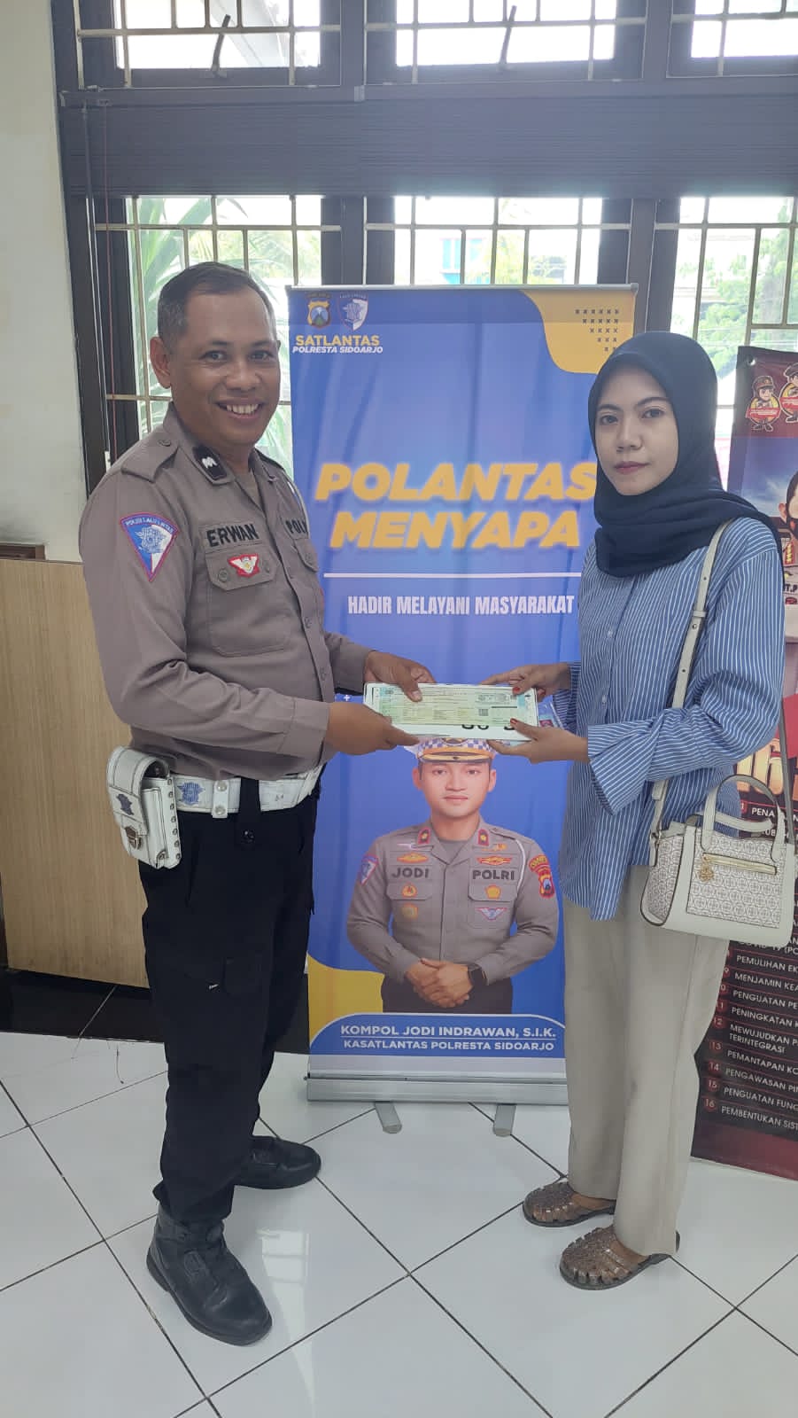Pada Selasa (tanggal kegiatan), suasana pelayanan di Samsat Sidoarjo Kota tampak berbeda. Seorang wajib pajak yang mengalami kesulitan memahami proses administrasi perpanjangan lima tahunan, mendapat perhatian langsung dari Aipda Erwan, petugas Polantas yang bertugas di lokasi.