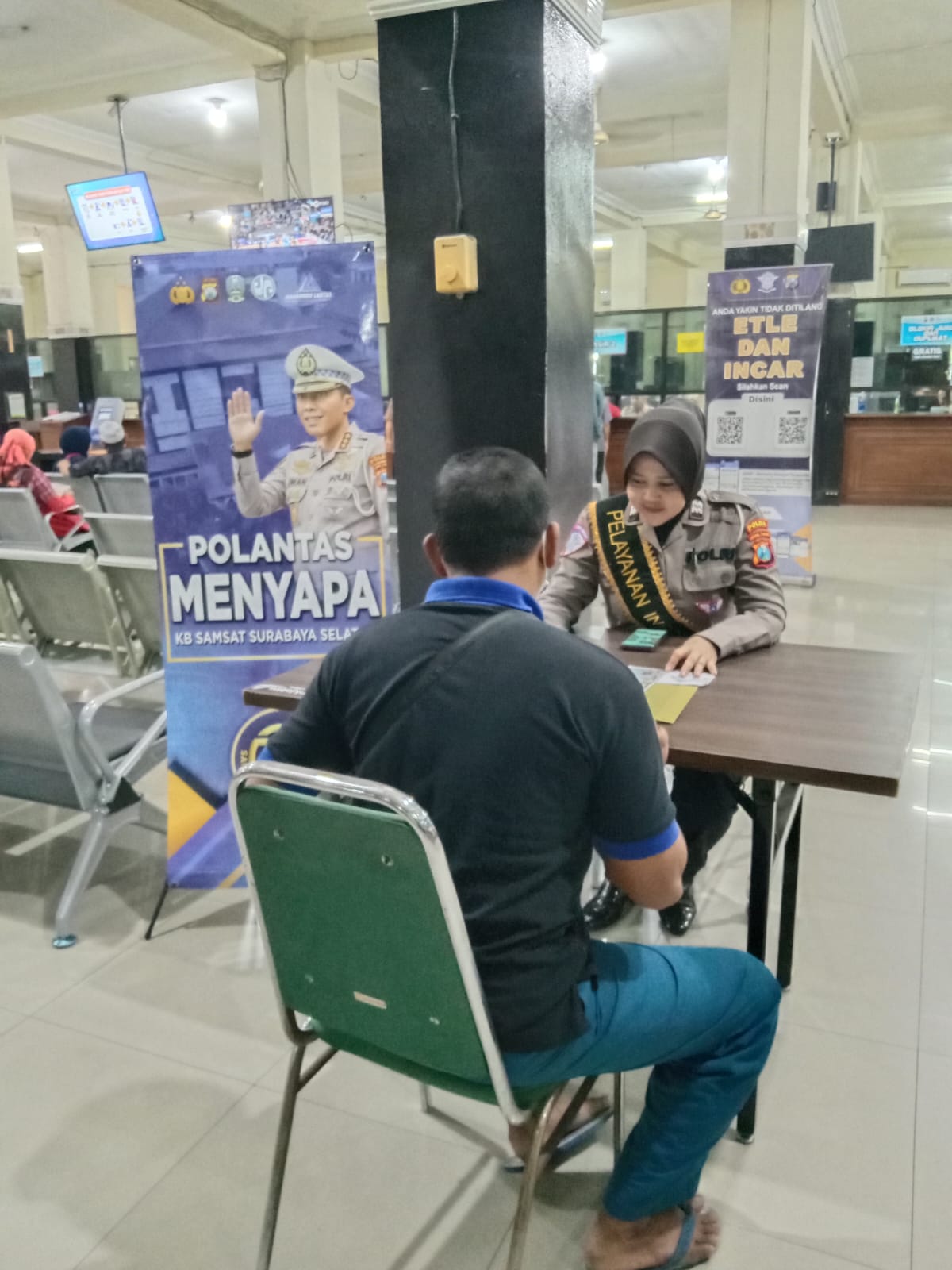 Liputan Surabaya – SURABAYA, Program “Polantas Menyapa” yang digelar Ditlantas Polda Jawa Timur kembali menghadirkan suasana pelayanan publik yang humanis di Kantor Bersama (KB) Samsat Surabaya Selatan. Dalam kegiatan tersebut, Polwan Aiptu Dian menjadi sorotan lantaran dengan sigap membantu seorang wajib pajak yang mengalami kesulitan saat proses perpanjangan STNK lima tahunan.