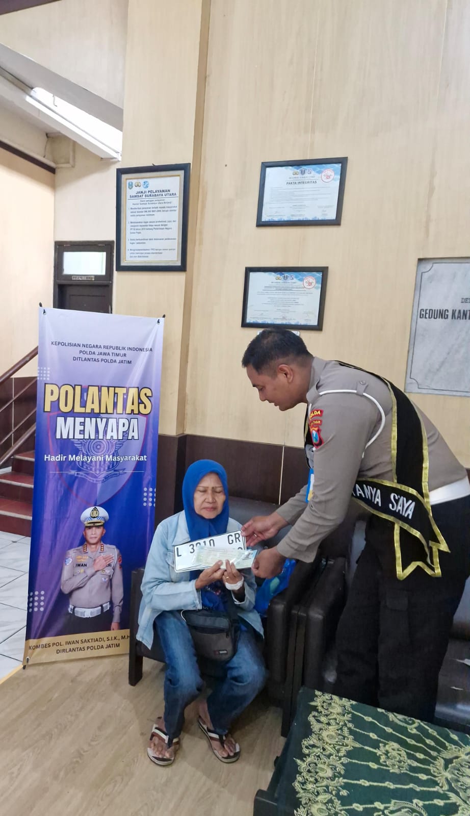 Liputan Surabaya – SURABAYA, Komitmen Direktorat Lalu Lintas (Ditlantas) Polda Jawa Timur dalam menghadirkan pelayanan publik yang humanis kembali ditunjukkan melalui program Polantas Menyapa di KB Samsat Surabaya Utara. Program ini menjadi wujud nyata kehadiran Polri di tengah masyarakat, khususnya bagi wajib pajak yang membutuhkan pendampingan dalam proses administrasi kendaraan bermotor.