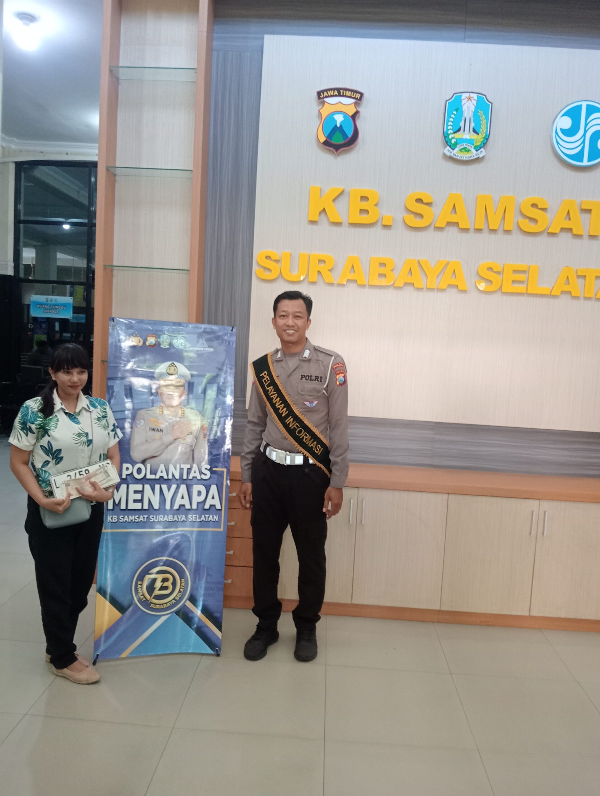 Liputan Surabaya – Surabaya, Program “Polantas Menyapa” yang digagas Direktorat Lalu Lintas (Ditlantas) Polda Jawa Timur kembali diwujudkan dalam pelayanan langsung kepada masyarakat di Kantor Bersama (KB) Samsat Surabaya Selatan. Kegiatan ini menitikberatkan pada pendekatan humanis dalam membantu wajib pajak memahami alur administrasi kendaraan bermotor.