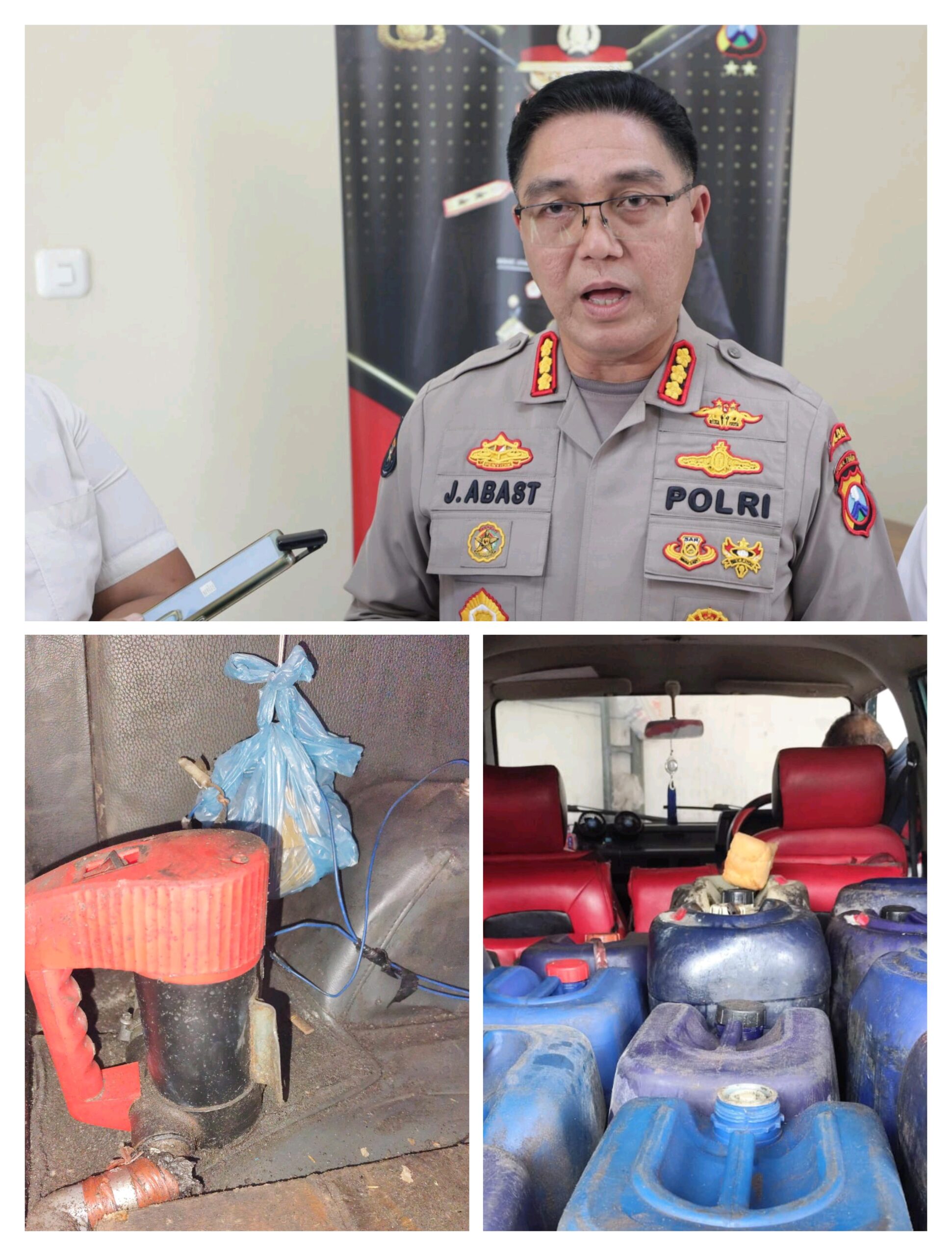 “Ada laporan masyarakat terkait dugaan pemindahan solar subsidi dari tangki mobil Panther ke dalam jurigen yang berasal dari hasil pembelian di salah satu SPBU kemudian dijual,” terang Kombes Abast.