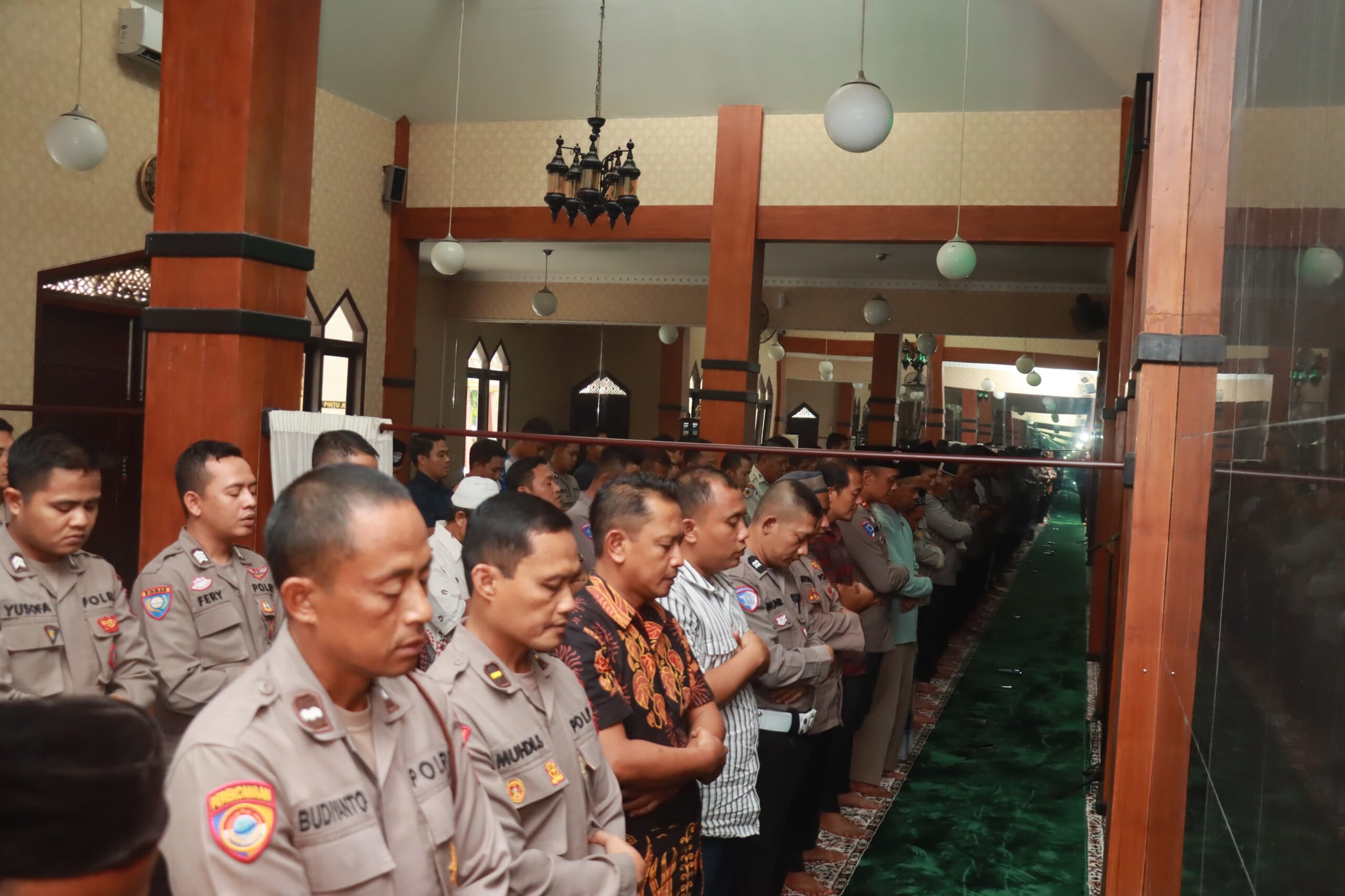 Setelah pelaksanaan sholat gaib, kegiatan dilanjutkan dengan doa bersama untuk keselamatan bangsa dan negara, serta memohon perlindungan bagi seluruh anggota Polri yang sedang bertugas menjaga keamanan dan ketertiban masyarakat.
